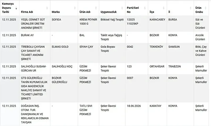 , gıda ürünlerinde taklit ve tağşiş yapan markaları ‘guvenilirgida.tarimorman.gov.tr’ internet adresinden açıklıyor.