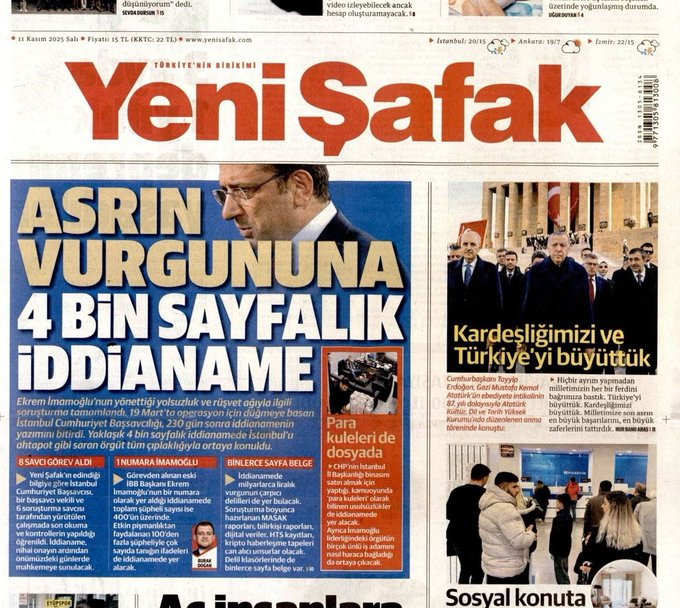 İBB iddianamesi yayınlanmadan, iddianamenin sayfa sayısına kadar detayı manşetten servis eden Yeni Şafak’a verilen röportaj aynı zamanda Çağlayan Adliyesi’nden basına servis edilen bilgilerin kurumsal bir kararla sızdırılığının da kanıtı olmuştur. İBB operasyonuna dair ayrıntıların doğrudan iktidara yakın bir medya organında yayınlanması, sürecin nasıl bir iletişim kurgusuyla yürütüldüğünü hepimize gösteriyor.