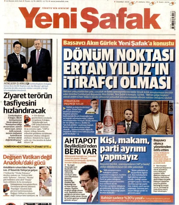 İktidara yakınlığı ile bilinen Yeni Şafak gazetesi özellikle İBB iddianamesi haberleri ile kişilerin lekelenmeme hakkı ve soruşturmaların gizliliği kanunlarını ihlal etmesi ile muhalefet tarafından eleştiriliyor. Zaman zaman Mehmet Şimşek’i de doğrudan hedef alan Yeni Şafak, en son ‘Komisyon İmralı’ya gitmesin’ manşetini atması ile MHP’ye yakın Türkgün tarafından hayli sert cevap alarak sessizliğe bürünmüştü.